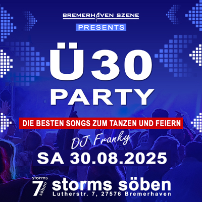 storms söben Lutherstr. 7, Bremerhaven, DeutschlandDas Beste vor dem Feste! Zum Ende des Jahres haben wir für euch am Samstag den 13.12.2025 die Best of Party im storms söben. Musikalisch gibt es einen bunten Musikmix […]