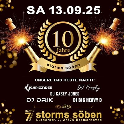 storms söben Lutherstr. 7, Bremerhaven, DeutschlandZu Silvester laden wir euch zu einem unvergesslichen Abend ein um ins neue Jahr zu feiern. Wir dekorieren das storms söben mit einer schönen Silvester Deko und unser DJ CASEY […]