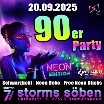 storms söben Lutherstr. 7, Bremerhaven, DeutschlandSA 07.02.2026 90er Party NEON EDITION im storms söben Am Samstag den 07. Februar 2026 haben wir für Euch die 90er Party als Neon Edition! Wir tauchen das storms söben […]